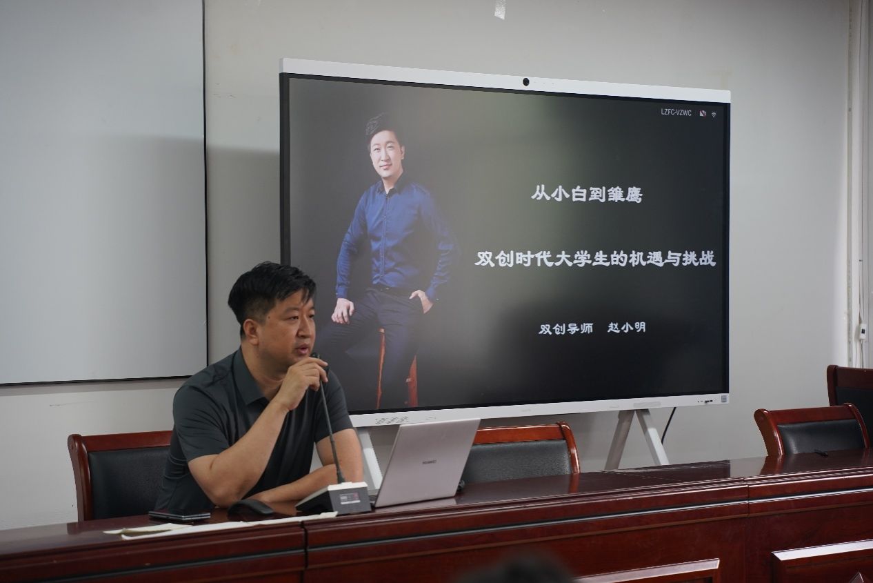 讲座伊始,赵小明老师以 “从小白到雏鹰:双创时代大学生的机遇与挑战” 为主题,系统介绍了大创、“互联网 +”、“挑战杯” 等主流赛事的核心赛道与评审标准。他结合自身指导团队斩获国家级奖项的案例,拆解 “商业计划书如何突出创新点”“答辩时如何用 3 分钟打动评委” 等关键问题,强调 “项目要扎根专业特色,把历史研究中的文化资源转化为创业动能”。